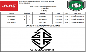 | 2 | GCD Armil | 8 | 6 | 1 | 1 | 33 | 17 | +16 | 30 |
